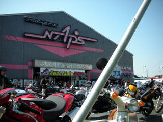 海岸沿いのコンビニはウポポポポッと言いそうなバイクの展示会