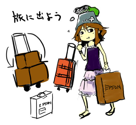 展示会場をポテトチップ食い散らかしながら徘徊するエプソンポテチ子さん。