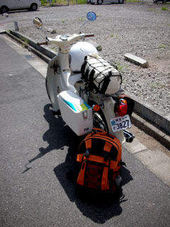 持って行こうと出発時点でこの有様。カブには大荷物が似合うなあ。