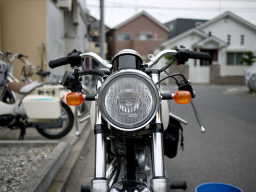 一ヶ月以上前にこっそり九十九里浜近辺で砂スライディングしてから曲がってしまったエストレヤのハンドル。利用に支障は無いレベルだけれどバランス悪くて気持ち悪いので直すことにしました。用意するのはハンドルとバーエンドキャップ。あとは純正をそのまま利用です。