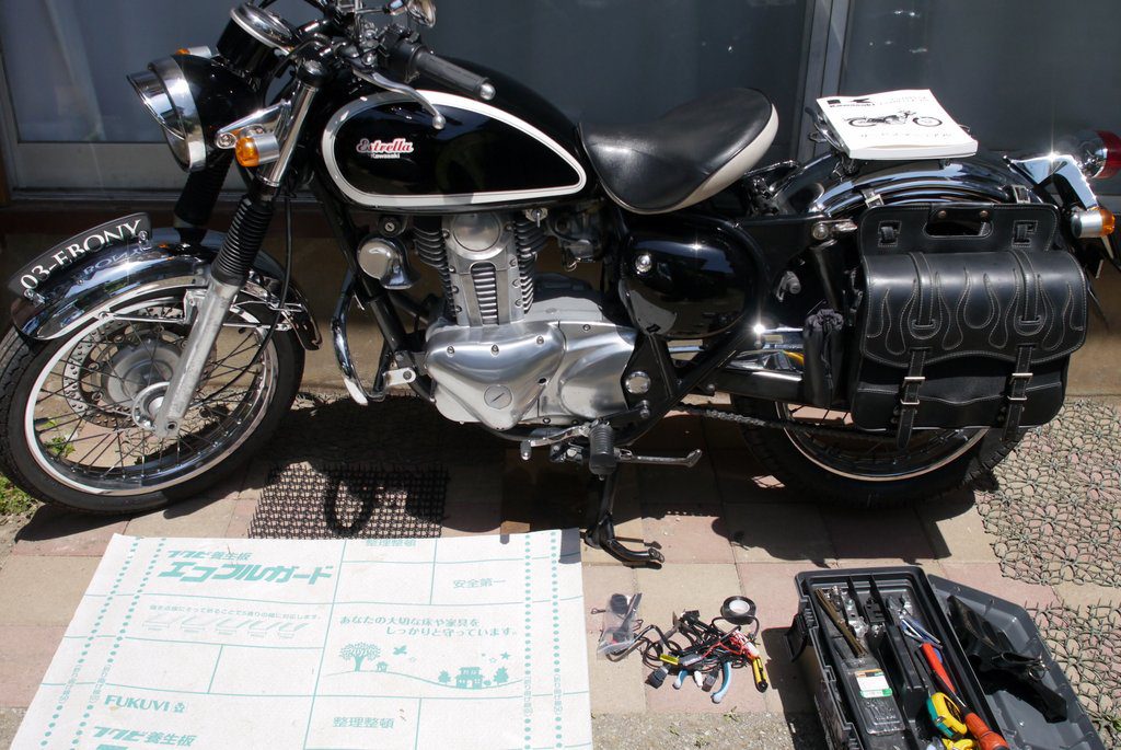 アクションカムのSJ4000をドラレコとして着けていたけれど、やはりツーリング中は電池残量が気になる。撮れていなかったら意味が無い。ということで、給電できるようエストレヤにUSBポートを着けることにした。