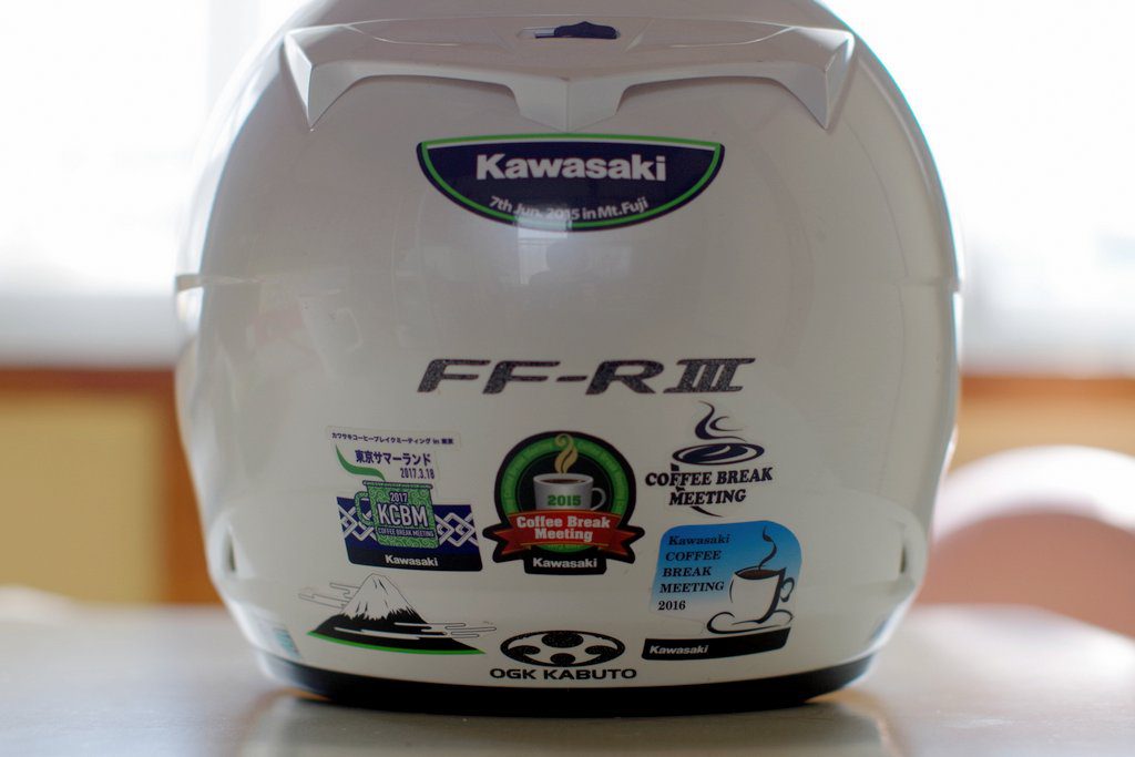 先週のKCBM2017で貰ったステッカーを早速ヘルメットへ貼り付け。もう引き返せないぞ…!貼りすぎて恥ずかしくなってきた!