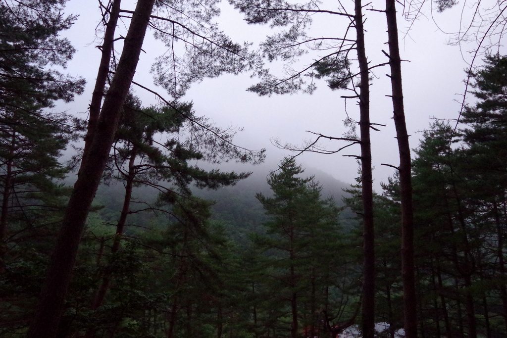 早朝の山間部は、定石のガスっぷりでした。