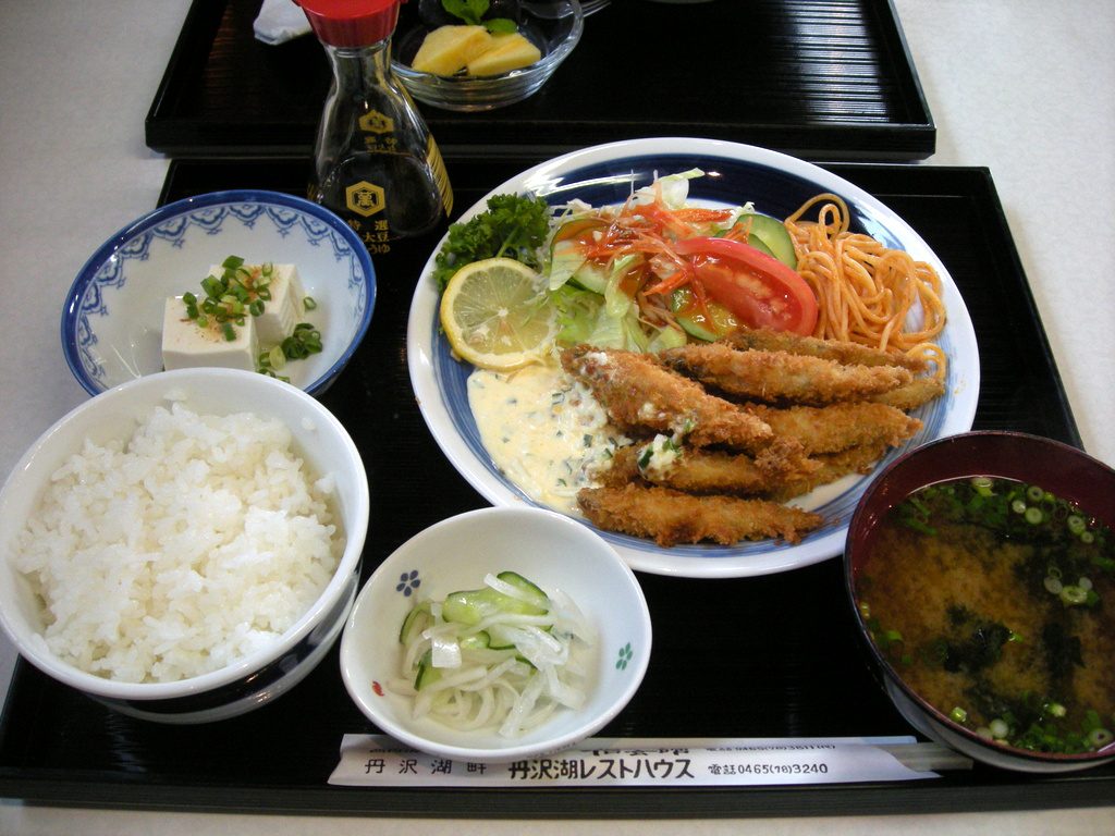 自分はわかさぎフライ定食。とてもサクサクで香ばしいフライがてんこ盛り。とても美味しかったです。