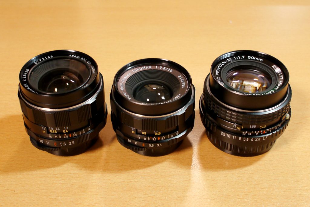 オールドレンズ 日記 2018.02.15 メインカメラのK-30が修理中なので、サブのDMC-G3で遊ぶためにオールドレンズを買ってみた。 金属鏡筒・金属キャップ・文字もプリントではなく掘ってある。素敵すぎる。 左2つはカビているので分解清掃予定です。 smc TAKUMAR 1:3.5/28mm smc TAKUMAR 1:3.5/35mm smc PENTAX-M 1:1.7/50mm